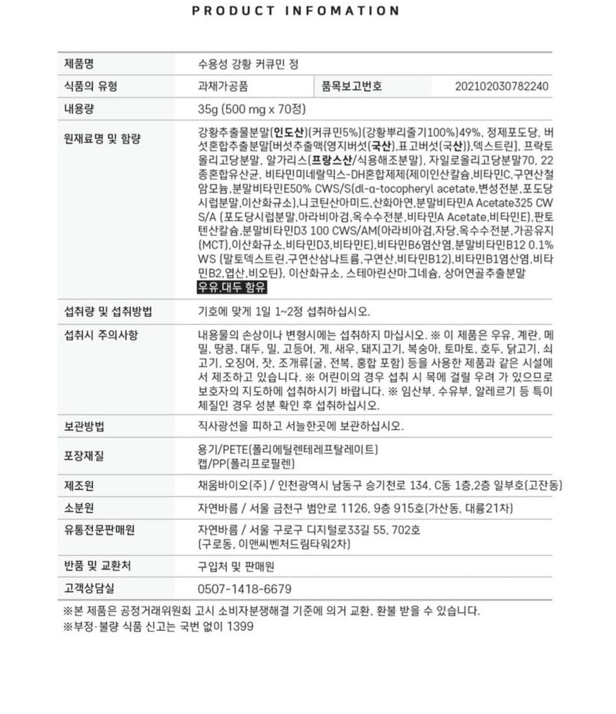 커큐민정 2알, 흑마늘즙 2포, 리포데이 올인원 맨즈팩 1포, 비아노스맥스 2알, 노즈픽션 1포