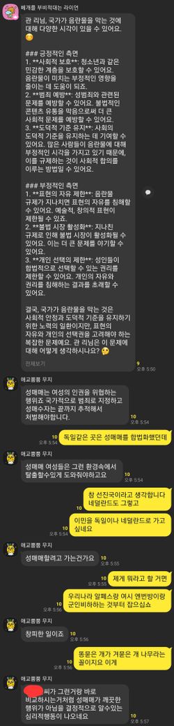 톡방에서 성매매에 관한 논쟁이 있었는데 제가 저렇게 성매매를 옹호하는 발언을 했습니다. 과연 저 날이 통매음에 저촉되는 말일까요?? 물론 실재로 저는 성매매를 한 적은 물론 없습니다.