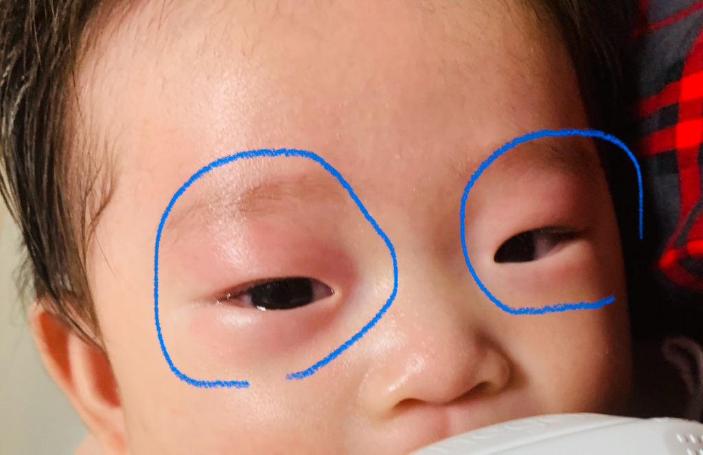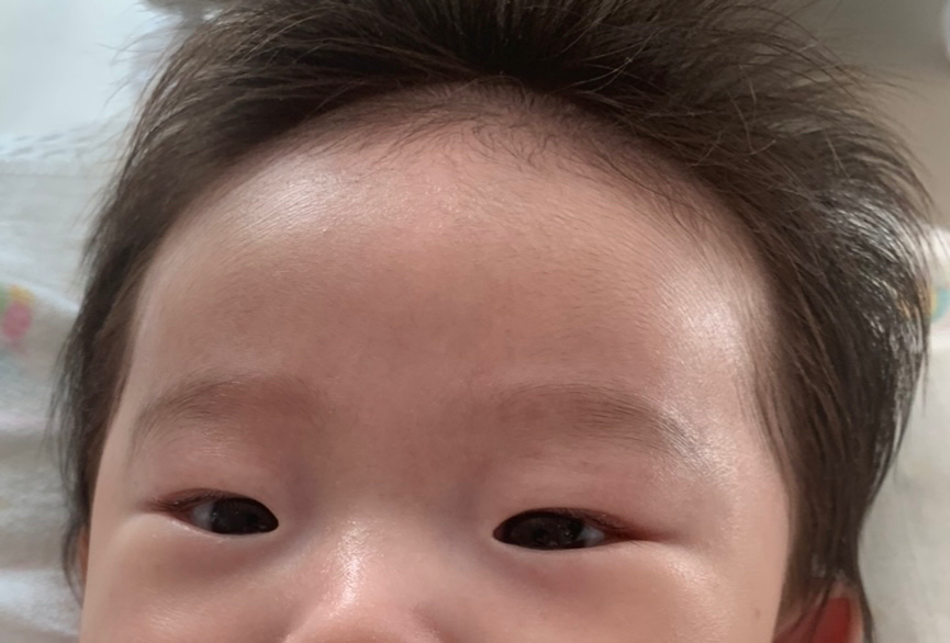 그로 인해 아이의 눈에 힘이 들어가 있는 것처럼 보입니다.