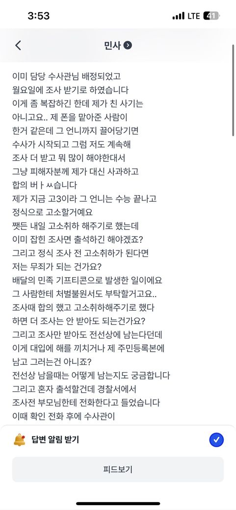 당사자가 미성년자라면 사건통지에 관한 사항이 법정대리인인 부모님에게 가게 됩니다.