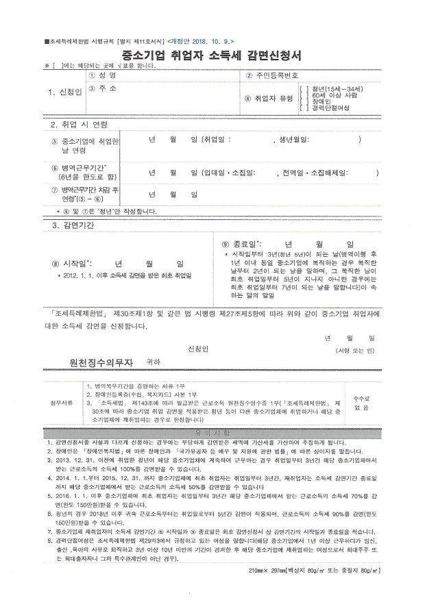 중소기업 취업자 소득세 감면신청서 작성 질문입니다.