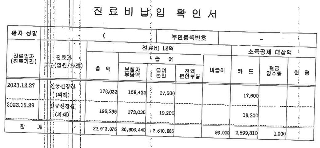 진료비 납입 확인서인데 총액을 적으면 되나요??