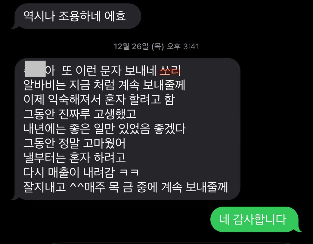 갑자기 하루아침에 저런 문자를 받은겁니다.