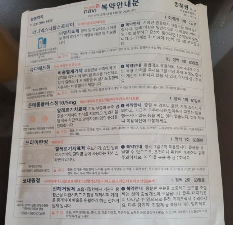 병원처방약과 항히스타민제 관련 문의