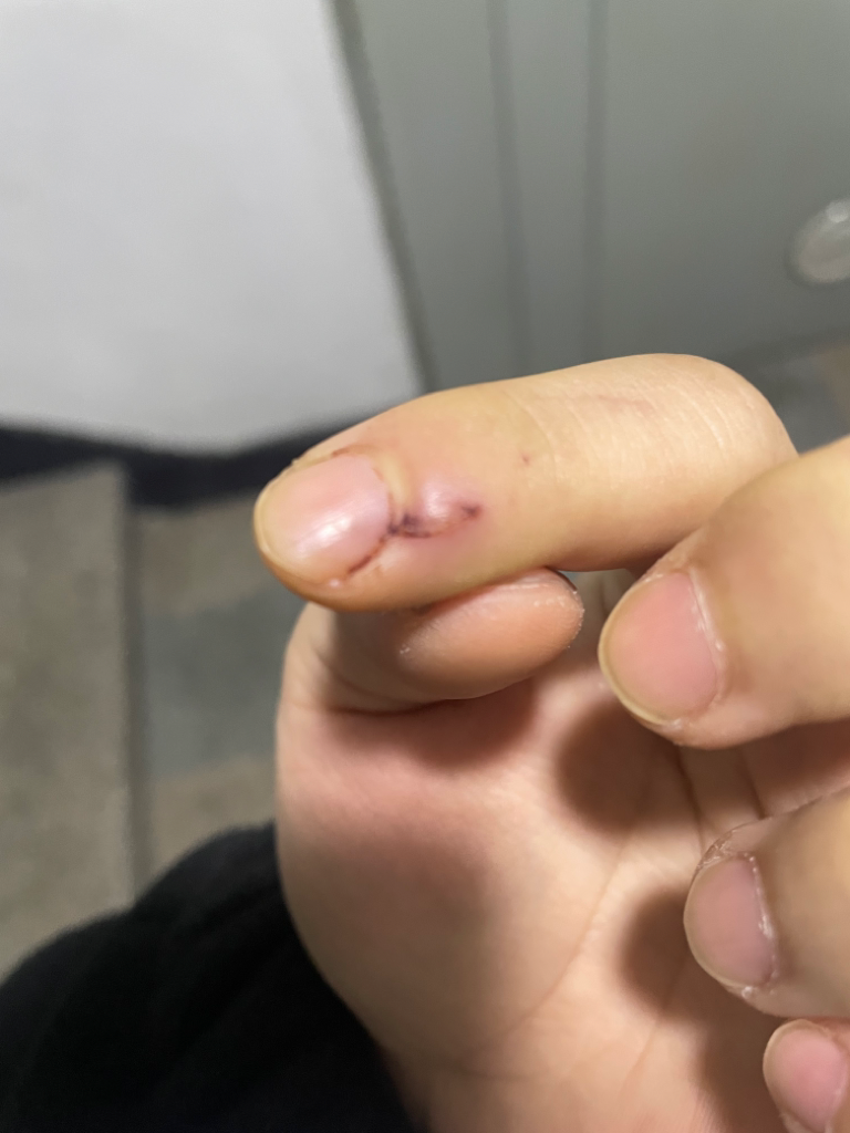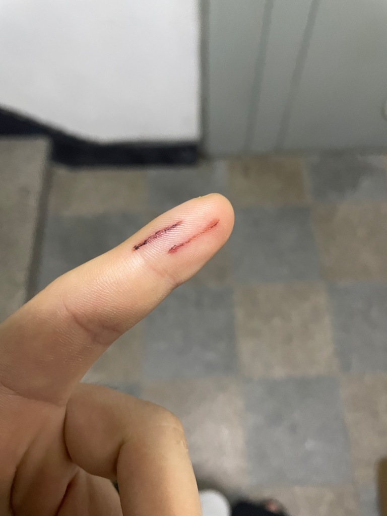 강아지에게 손가락이 물려 찢어졌는데, 주방 일을 나가도 될까요?