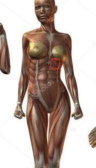 가슴아래, 명치 중앙부터 왼쪽까지 초등학생 주먹만한 혹(몽우리)이 튀어나와 있습니다.