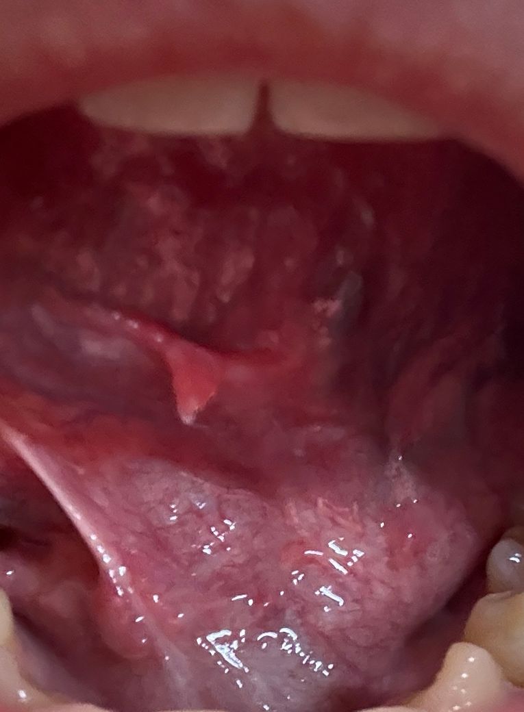 사진으로만 보기에는 애매하긴 합니다만 아무래도 설소대가 끊어진 소견일 것으로 사료됩니다. 심각한 출혈이 동반되거나 한 것으로 보이지는 않지만 정도가 심해 보이며 봉합이 필요한 소견일 가능성이 높아 보이기 때문에 빠르게 이비인후과 및 구강외과 진료가 가능한 곳에서 치료를 받으시길 권고드립니다.