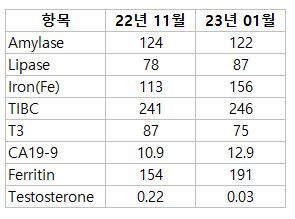 22년 11월, 23년 1월에 두 차례 피검사를 진행했습니다.