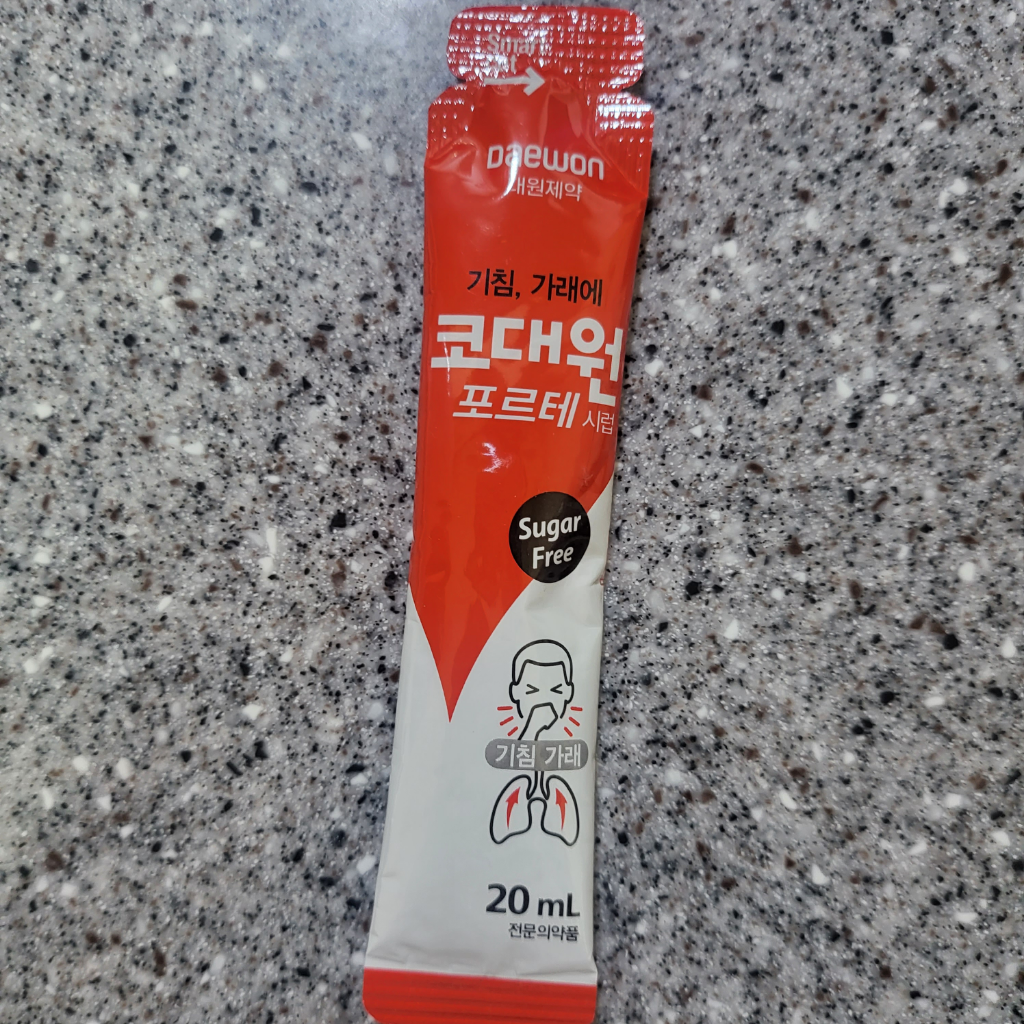 처방받은 약을 먹어도 기침이 안떨어지면 코대원포르테시럽을 추가로 먹어도 괜찮아요.