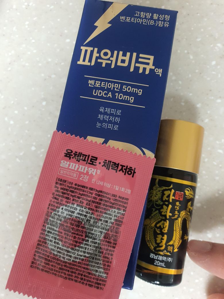 처방받으신 약들과 약국에서 구입하신 피로회복제들과는 같이 복용하실 수 있습니다