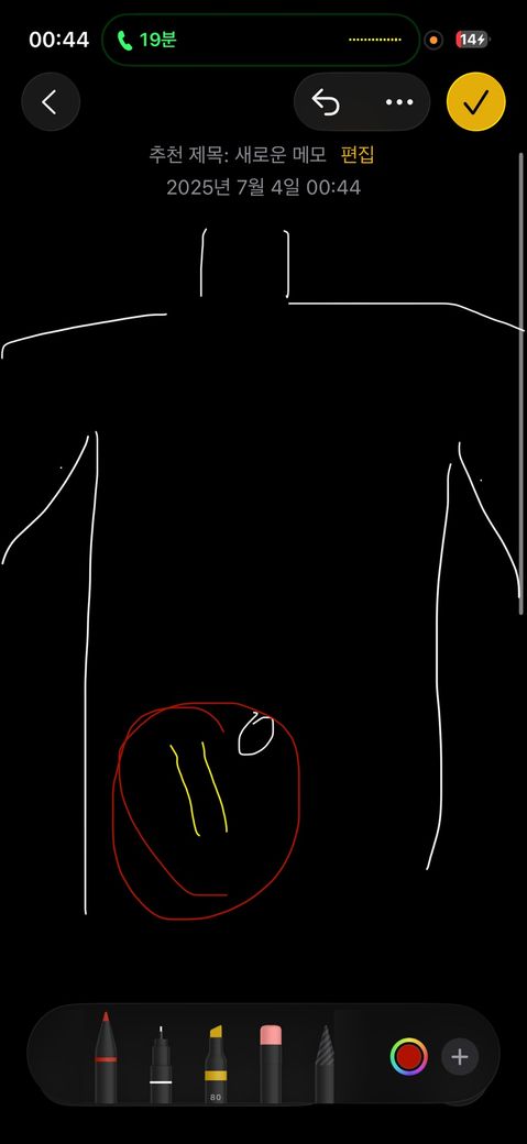 배꼽 오른 대각선으로 3센치 밑쯤..?