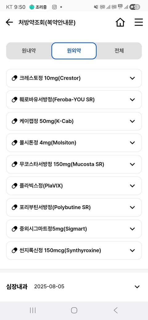 지금 조합에서 가장 조심할 부분은 위산 억제제가 중복될 수 있다는 점인데, 케이캡은 위산 억제제라서 에넥시움이나 파모칸 같은 위산 억제제와는 보통 같이 겹쳐 쓰지 않고 한 가지만 선택해 복용하는 편이 안전합니다. 무코스타서방과 레스파 같은 성분 계열이 겹치거나, 모사프리드 계열로 보이는 약과 모티리톤 그리고 포리부틴처럼 장운동 약이 겹치면 설사, 복통, 복부팽만이 더 생길 수 있어 배탈 때는 “추가”라기보다 겹치는 약을 빼고 필요한 것만 남기는 방식이 좋습니다. 심장약 중 플라빅스를 복용 중이면 에넥시움 같은 일부 위산 억제제는 조합을 더 보수적으로 보는 편이라, 위장약은 중복 없이 단순화해서 드시는 쪽이 유리합니다. 결론적으로 지금은 위산 억제제는 하나만, 장운동 약도 하나만으로 정리하고 나머지는 겹치는 성분이 있으면 빼고 복용하시는 것을 권장드립니다 감사합니다.