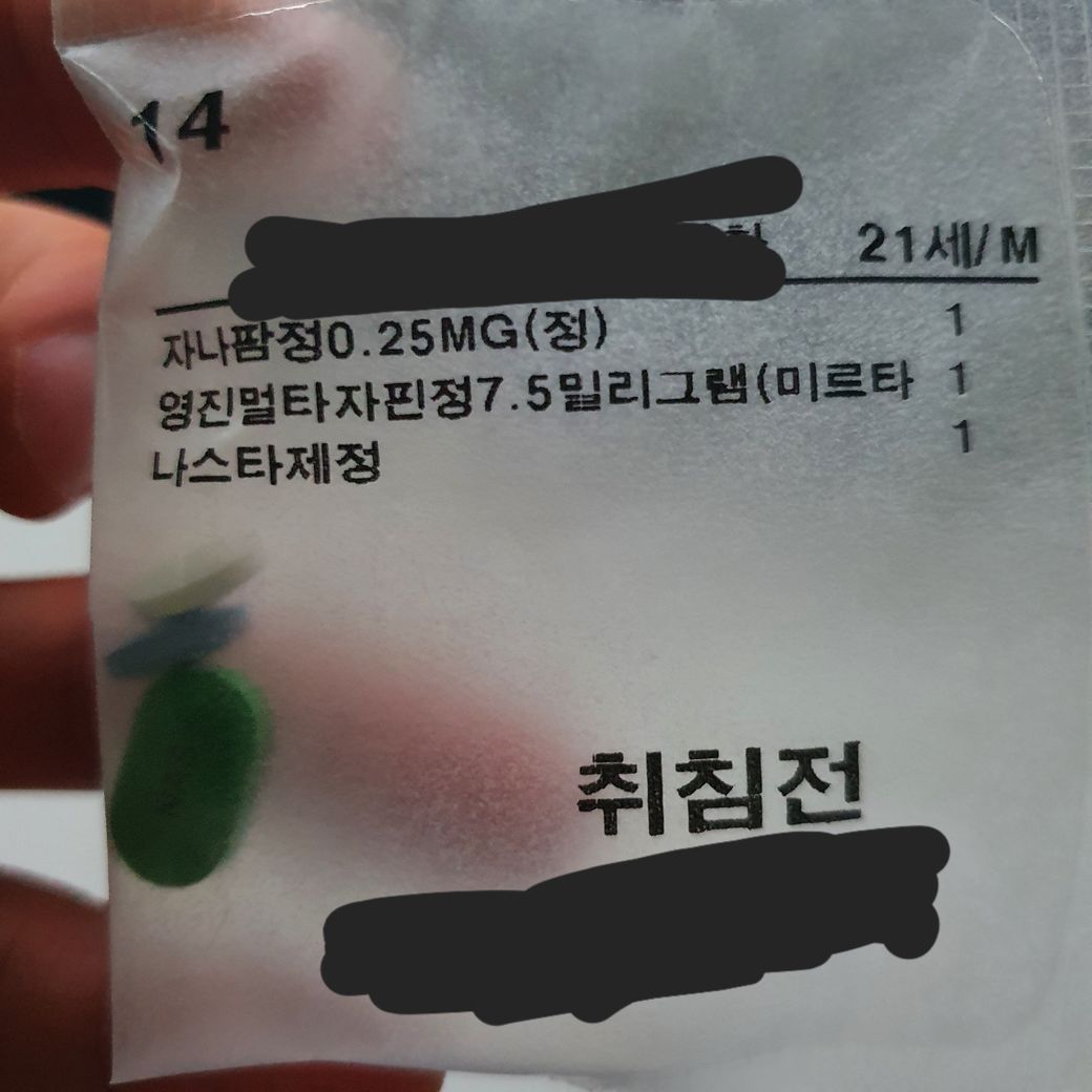 자나팜은 항불안제, 멀타자핀은 항우울제로 정신과에서 처방된 약물로 보입니다.