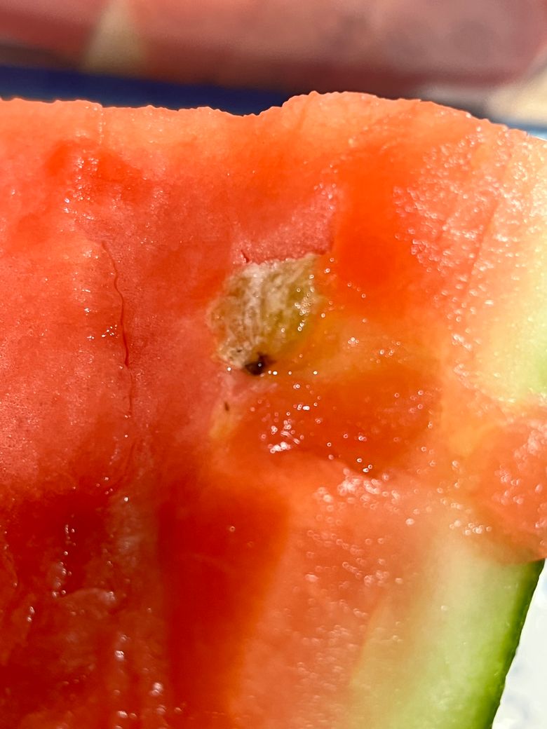 수박을 자르다 보니 딱딱한 무언가가 있습니다..