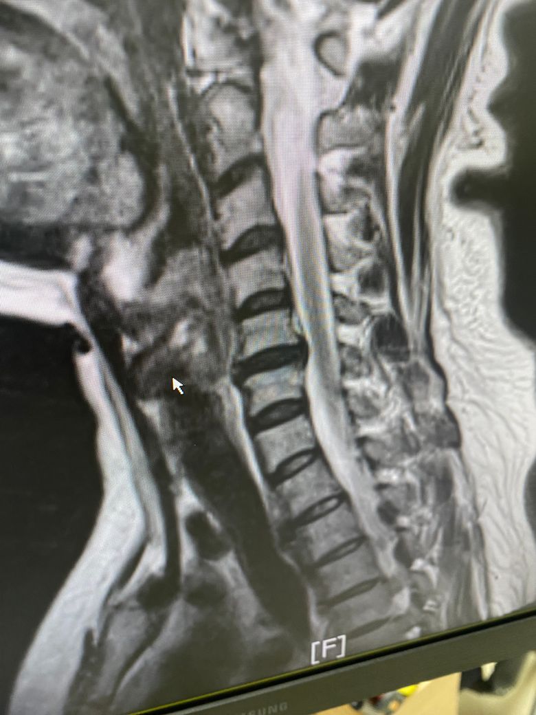 목에 있는 추간판의 팽윤이 보이는 것 같습니다.