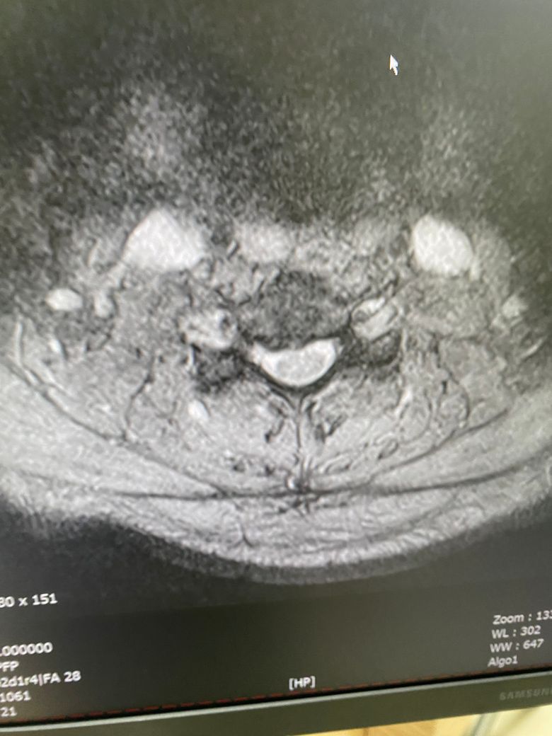 올리신 사진 세 장만 가지고 정확하게 어떻다 이야기 하기는 어렵습니다만, 디스크가 명확하게 돌출이 되어 있기는 하지만 신경을 누르는 정도가 딱히 심해 보이지 않습니다. 해당 사진들만 보았을 때에는 심각한 수준의 디스크로 보이지는 않습니다.