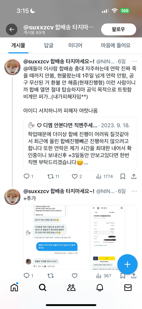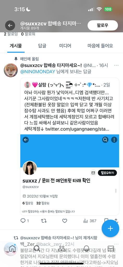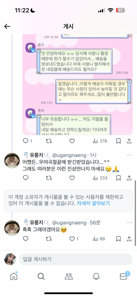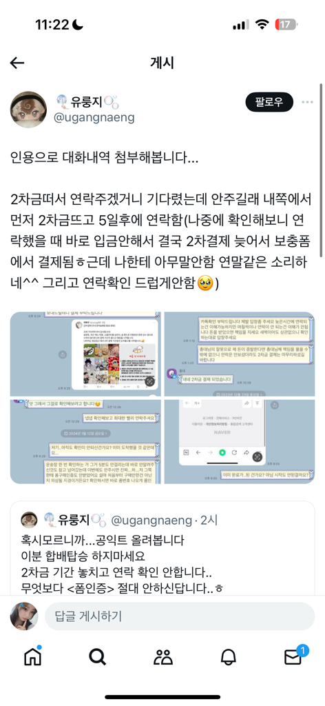 인스타나 오카방에서 나눈 대화를 게시한 경우,