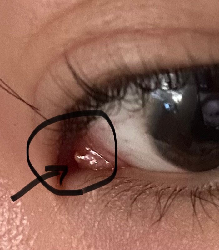 동그랗게 노란 작은 게 있는데 뭘까요? 안과 가서 짜야 하는건지...? 답변 주시면 감사하겠습니다 🙇🏻♀️