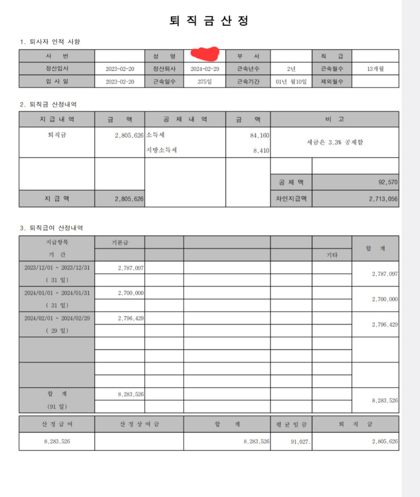 4대보험 미가입자 퇴직금 세금 질문입니다 !