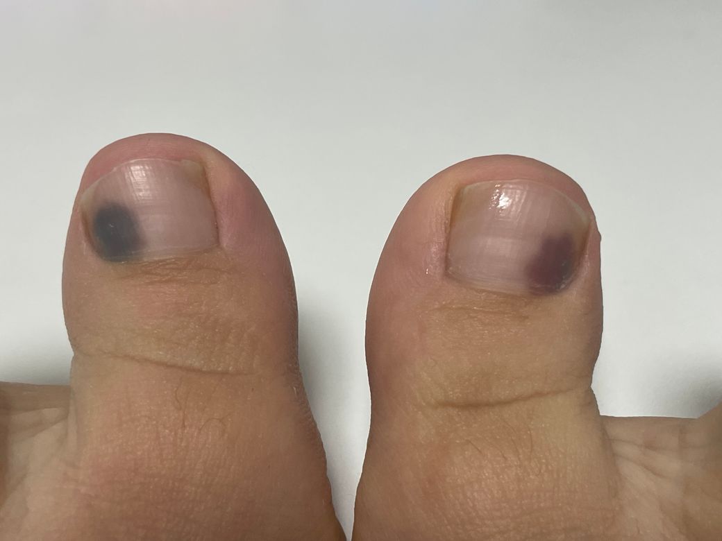 왼쪽과 오른쪽 발톱에 각각 검은 점이 생겼고, 통증은 거의 없다면 여러가지 원인에 의해서 그럴 수 있습니다.