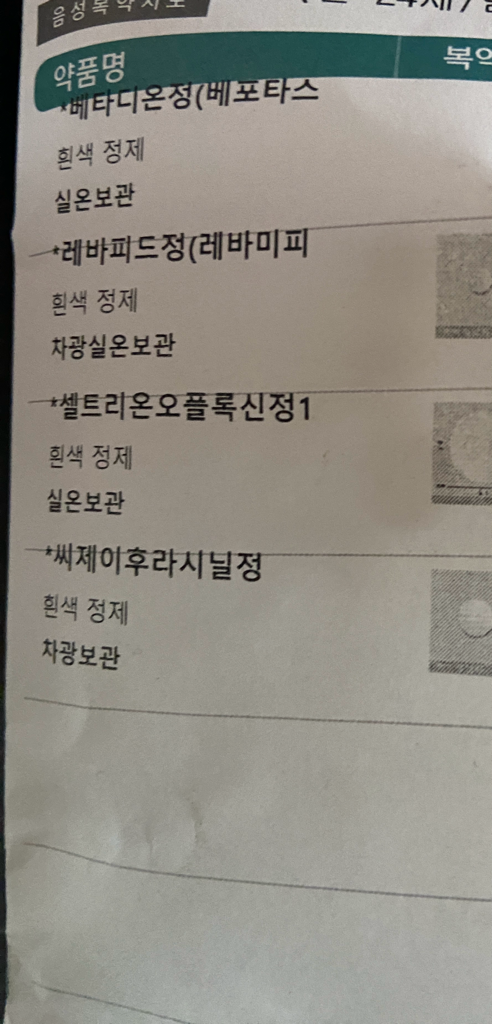 피부과액에서 레바피드만 빼시면 되겠습니다.