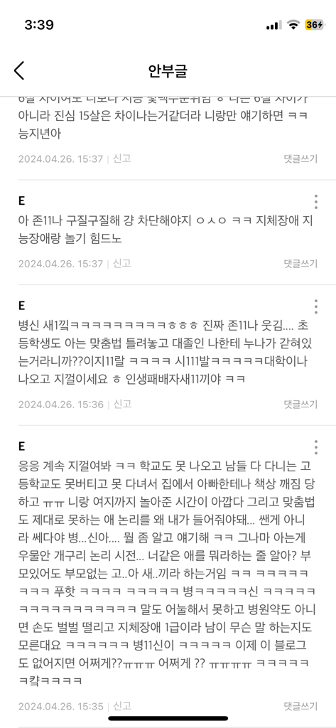 사건은 시작은 일단 인터넷에서 만난 친한 사람이 생겼습니다 그사람과 게임에 대해서 대화를하다가 뭐가 도움이 된다이런식으로 제가 그 사람한테 얘기를 했습니다 근데 그 부분에서 엇갈려서 그 사람이 저한테 카톡으로 이런식으로 말하고 차단했습니다 그래서 저도 짜증나서 그사람의 블로그로 가서 게임은 도움이 되는데 도대체 이해를 못해주냐 이런식으로 제상황과 이해할수있게 적었습니다 그러고나서 블로그에 안부글이란게 있는데 그사람은 저한테 사진에 첨부된식으로 욕을 했습니다 신고같은건 많이 힘들까요..?