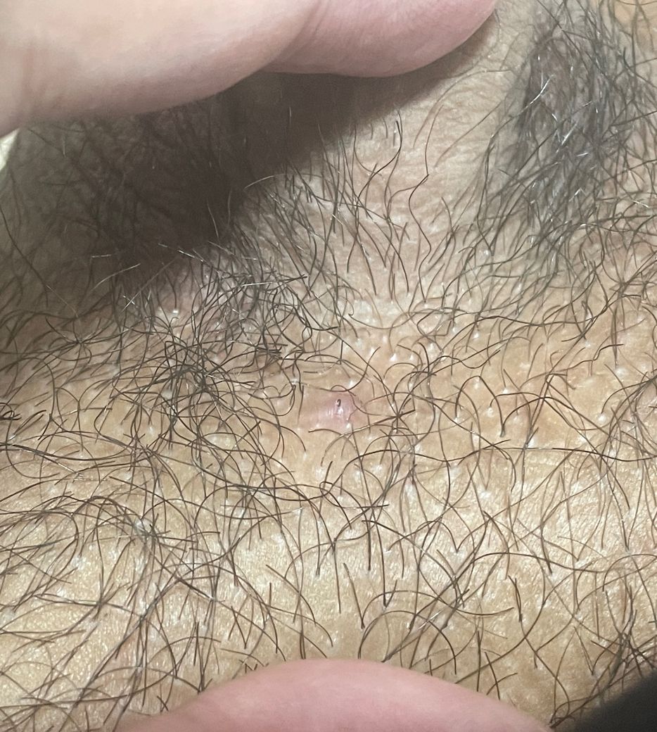 현재 병변 모양으로 보아 전형적인 성병보다는 음모가 나는 부위에 생긴 모낭염일 가능성이 좀 더 높아보입니다. 우선은 경과관찰 하시면서 병변이 사라지는지 지켜보시되, 뾰루지가 따가운 경우나 최근에 성적 접촉이 있었다면 성병(곤지름)을 완전히 배제하기는 어려우므로 근처 비뇨의학과에 방문하셔서 의사의 진찰을 받아보시기 바랍니다.