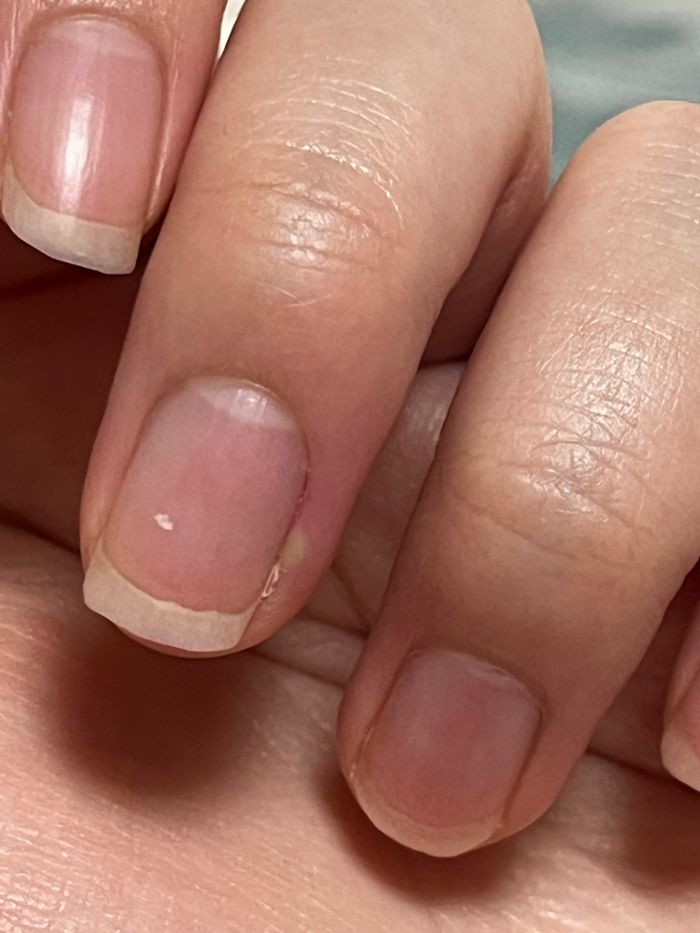 조갑주위염이 발생하고 진행을 하면서 피부 안쪽에 고름이 찼을 가능성이 가장 높아 보입니다. 혼자서 무언가를 하려고 하지 마시고 피부과에서 무균적으로 제대로 제거 시술을 받고 드레싱을 교체해가며 약물 처방을 받아서 치료를 하시길 권고드립니다.