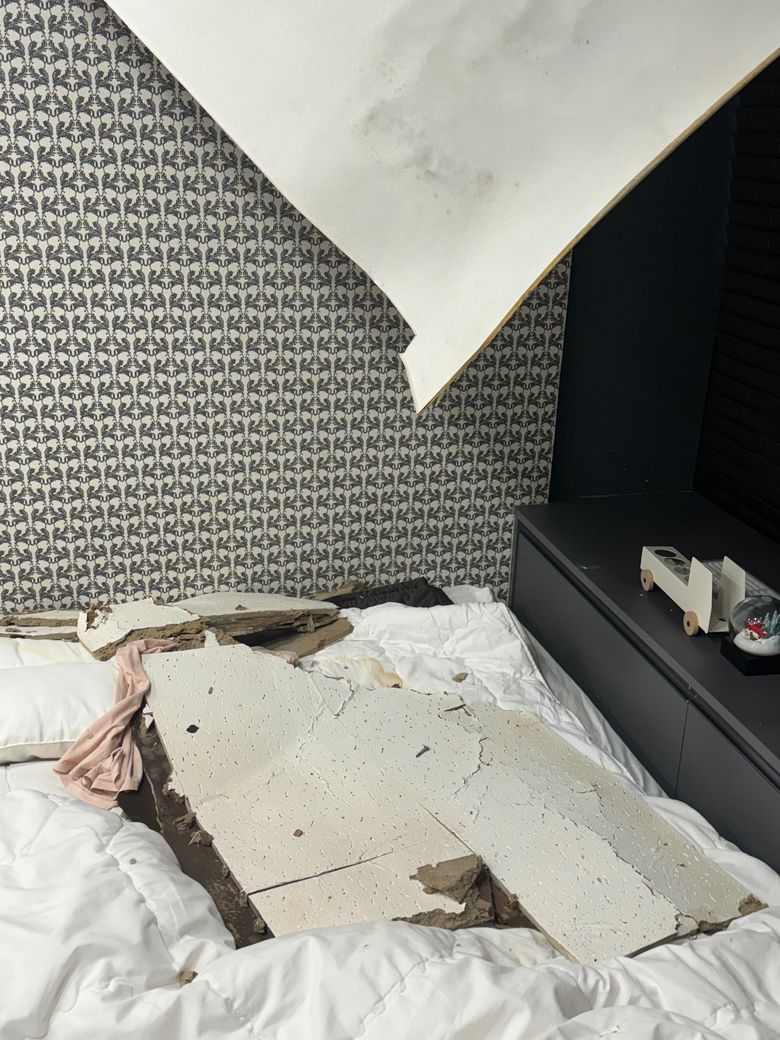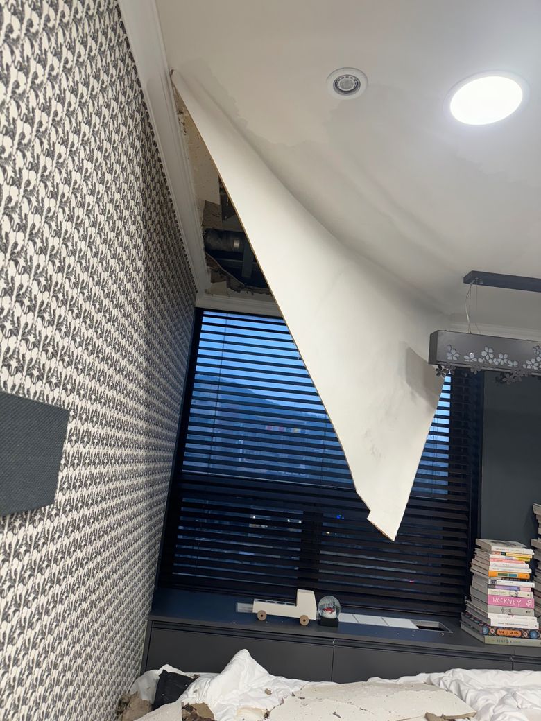 어제 8일 화요일 저녁에 퇴근하고 들어가니 집 천장이 무너졌있었어요
