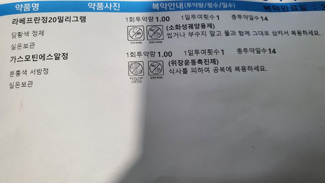 2. 라베프란/가스모틴의 경우 공복에 먹을 수 있으며 해당 약만 공복에 드시고 나머지는 식사 후에 드시면 됩니다.