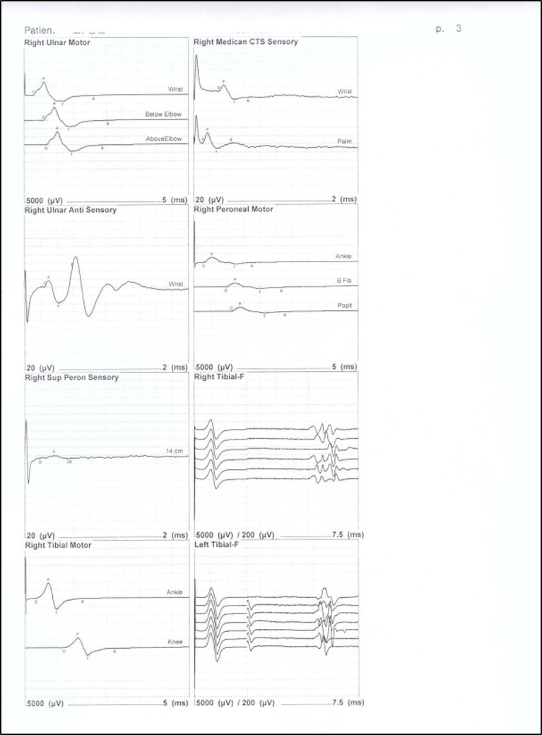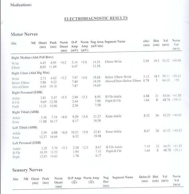 당뇨로 인해서 말초신경병증이 왓을 가능성도 있고 그래서 다리쪽의 어떤감각적인 부분이 저하가 올수 있지만 근전도 검사 결과만으로 딱 뭐라고 하기는 힘듭니다.. 리리카 약은 당뇨병성 말초신경병증이 있을때 급여 처방이 가능하며, 신경통 증상을 조절해주는 약입니다. 개인적으로 superficial peroneal n. (신경) 죽었다는 보기엔 근거가 좀 부족하다고 생각이 됩니다.결론적으로 지금 무릎 골절이와서 치료하는것이랑 근전도 결과랑 연관관계가 없어보여서 치료 계획 세우는데는 문제가 없을것 같습니다. 허리문제가 동반되어있을수도 있다고 기록지에 써있으니 정형외과/재활의학과에 내원하셔서 제대로된 진단을 다시 받아보시길 권유하겠습니다