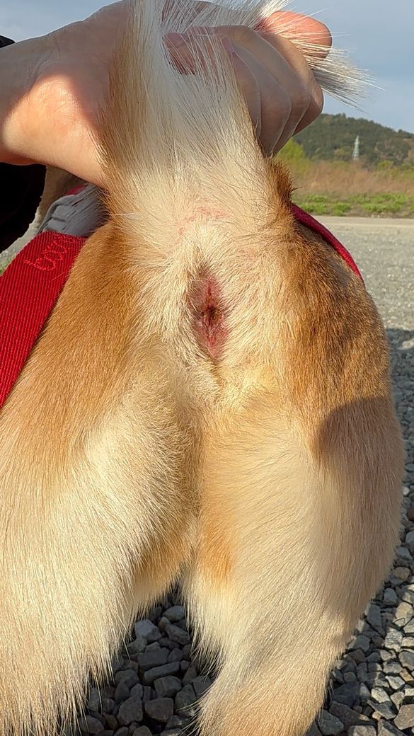 강아지가 병원에서 진료 보고 나서 항문이 이렇게 됐어요