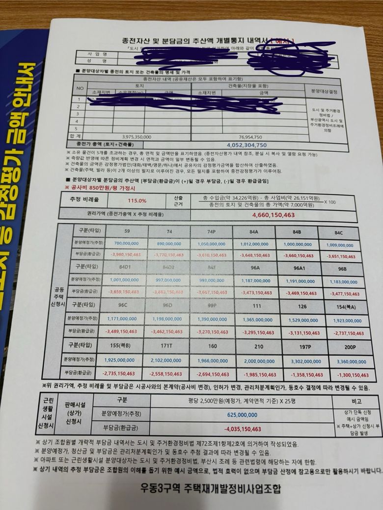 이주비·기타 비용 정산이 따로 있는 경우 일부 조정될 수 있습니다