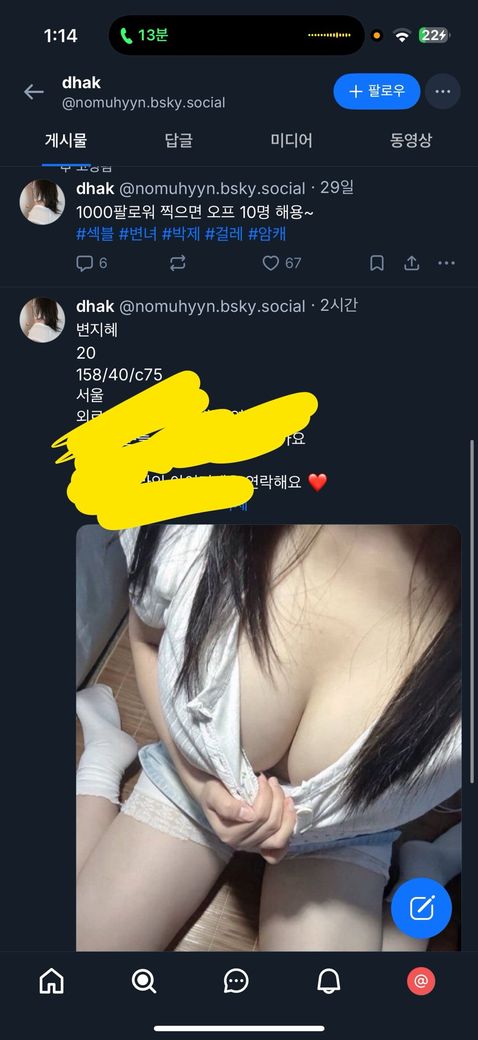 블루스카이라는 소셜네트워크서비스에서 라인 아이디로 연락하어 제 성기 사진과
