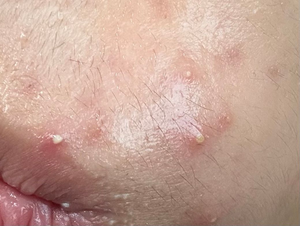 모낭염은 주로 세균 감염으로 모낭에 염증이 생기는 것으로, 짜도 고름만 나오고 면포는 나오지 않습니다. 털이 있는 부위에 잘 생깁니다