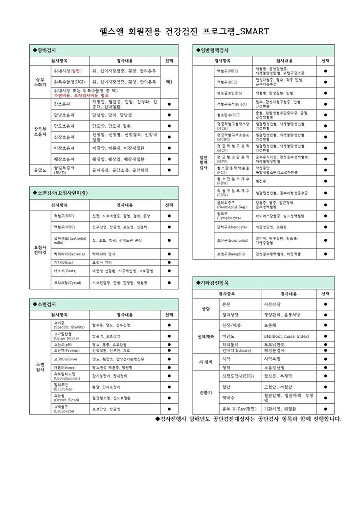 주기적으로 받아야할거나 아픈 곳은 검사 잘 받고 있어서 vip검사 이런거는 필요없을 거 같아서 거절했는데,