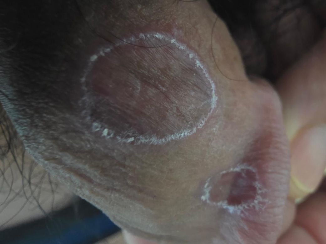작년8월에 화상입은것마냥 피부가 벗겨져서 연고바른뒤 신경안쓰고있었는데 이렇게 되었네요 성병인걸까요? 간지럽다거나 아픈건 없습니다.