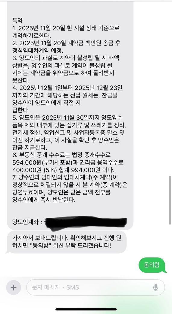 문자로 가계약서 받고 계약금 100만원 먼저 받았습니다 그리고 계약서를 11/24 월요일 오전11시에 작성하기로했다길래 알겠다하고