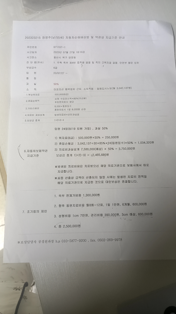 산재도 처리가 가능한데 산재처리는 전혀 고려하지 않으신 것 같아 조금은 아쉽다고 생각도 됩니다.