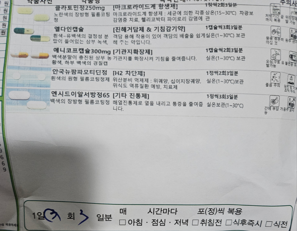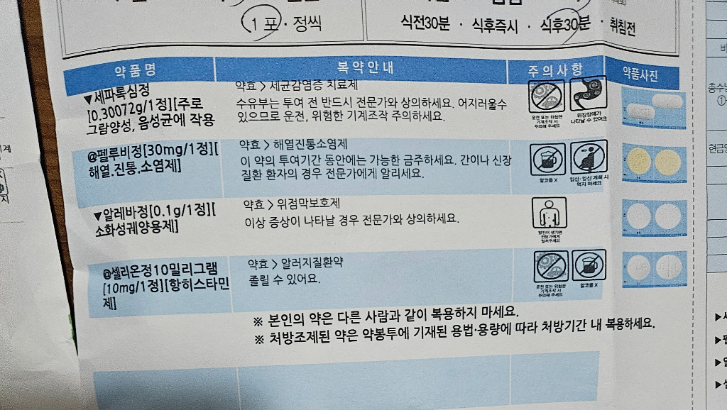 세파록심정, 클라토민정은 둘다 끝까지 먹어야하구요.