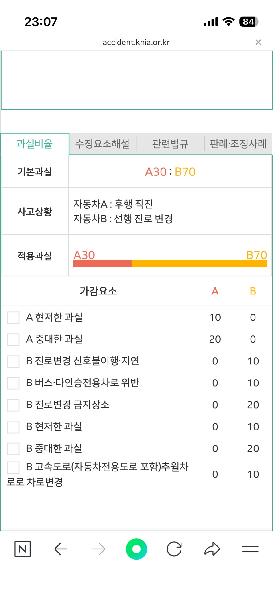 그 기본 과실은 차선 변경 차량 70 : 30 직진 주행 차량입니다.