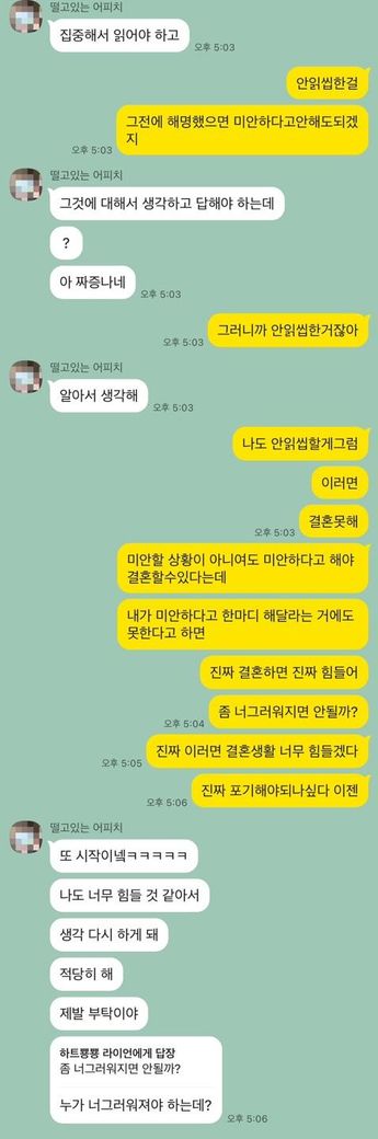결혼 전제로 만난다고 하셨는데 이렇게 양보 없는 남자랑 결혼생활 힘듭니다.