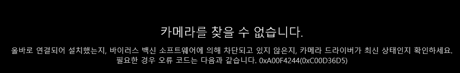 카메라 어플을 실행하면 이미지와 같은 에러문구만 나오고 실행이 안되네요.