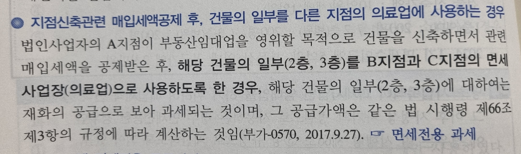 매입세액공제를 적용받은 이후에 해당 건물을 일부를 임대하는 경우 부가가치세