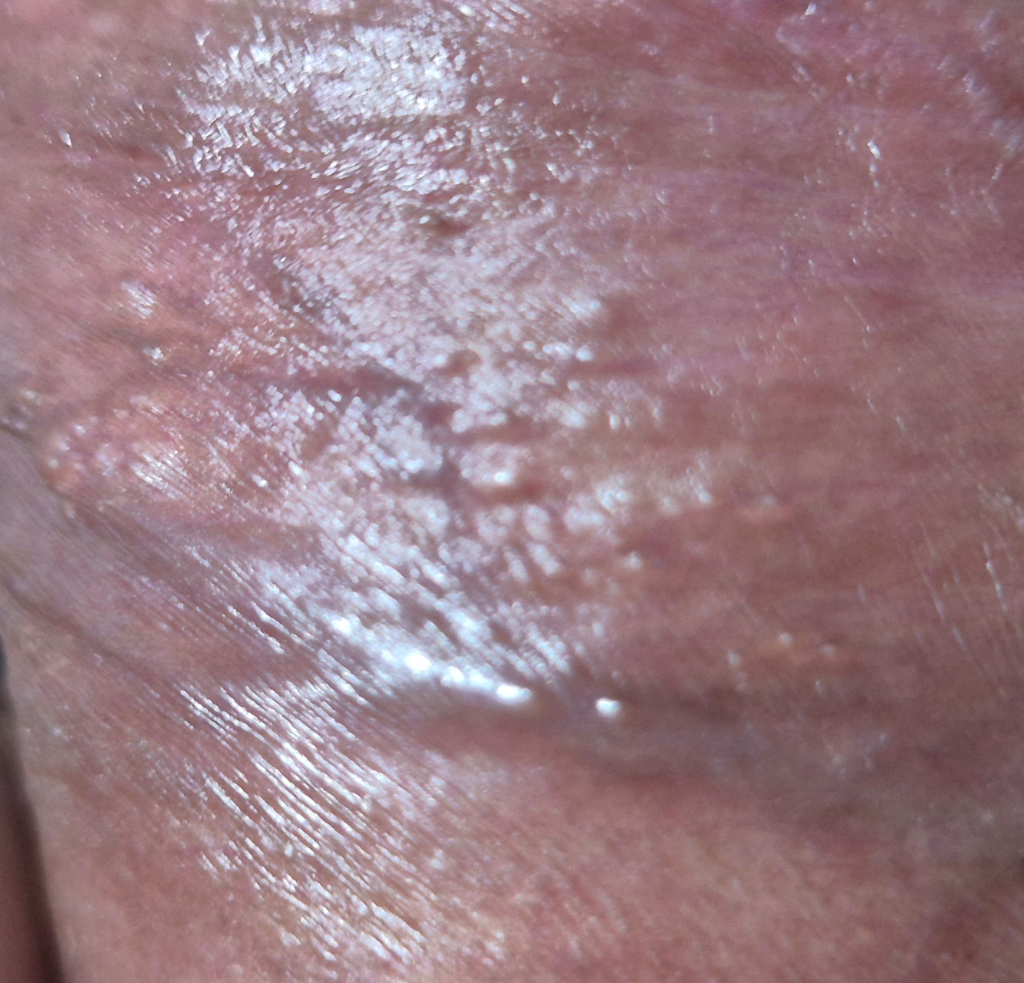 수포성 병변이 뚜렷하지 않아 성관계의 경혐 없다면 헤르페스 병변의 가능성은 높지 않아 보입니다.