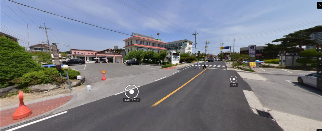 차량진행 중 맞은편 차선은 멀리서 오고 있어 주차장입구에서 중앙선침범하여 주차장으로 진입,
