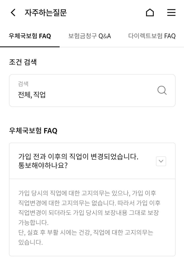근데 검색을 해보니 우체국보험의 경우 가입시점에 직업고지 이후 직업이 변경되더라도 고지의무가 없다는 의견과 우체국 보험이더라도 실손보험의 경우는 고지를 해야된다는 의견이 갈리던데 어떤게 맞는건가요?