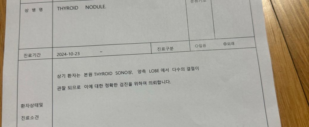 초음파를 받았으며 해당산부인과에서는 내과에서 진단받으라고 해서 진단받으셧습니다