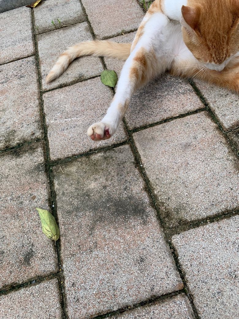 올려주신 내용은 잘 확인하였습니다. 길고양이로 발톱이 빠졌고, 해당 부위에 피가 있는 것으로 보입니다. 자세히는 모르겠지만 말씀하신 것처럼 발가락쪽 발톱이 빠졌거나, 피부가 상처를 입으면서 염증 소견이 있는 것으로 생각됩니다. 길고양이인 경우, 해당 상처가 있으면 세균에 의한 감염의 위험이 높고, 적절한 치료를 받지 않으면 위험할 수 있다고 생각합니다. 길고양이에게 너무 접근하다가 상처를 입지 않도록 주의할 필요가 있으며, 조심히 포획하여 적절한 치료를 받아야하지 않나 생각해봅니다. 길고양이의 경우, 사람이 가까이 다가가면 공격 본능을 보일 수 있고, 붙잡히는 것에 대해 경계심이 높을 수 있으므로 혼자서 길고양이에게 접근하는 것은 위험할 수 있으므로 주의가 필요합니다.