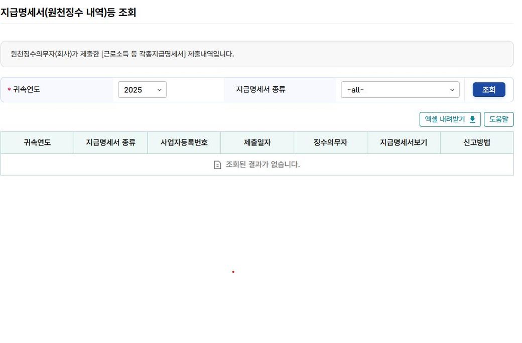 그런데 홈텍스에 들어가서 지급명세서를 조회했는데 자료가 나오지 않네요.